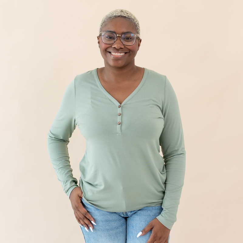 Be the first to review “Women’s Long Sleeve Henley Tee in Thyme”
